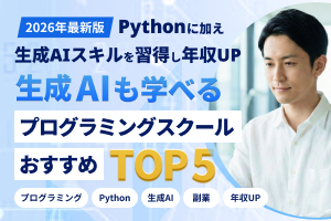 どれがおすすめ?人気プログラミングスクール比較表 DMM 生成AI CAMP 学び放題『生成AIエンジニアコース』 総合評価 4.9 詳しく見る 受講料 月額14,800円で全コース学び放題(入会金なし) 教材 エンジニアコースのほかにも、Webデザイン、動画クリエイタ... -